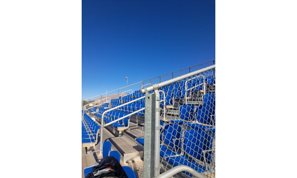 Unbelievable. The clothes are STILL hanging on the railing. It’s been two weeks. Kids walk right past the stadium every day to get from the parking lot to the school. There’s been soccer games, lacrosse, some field hockey whatever. Poor Tammy’s memorial sweatshirt is just flapping in the wind. Nobody cares.